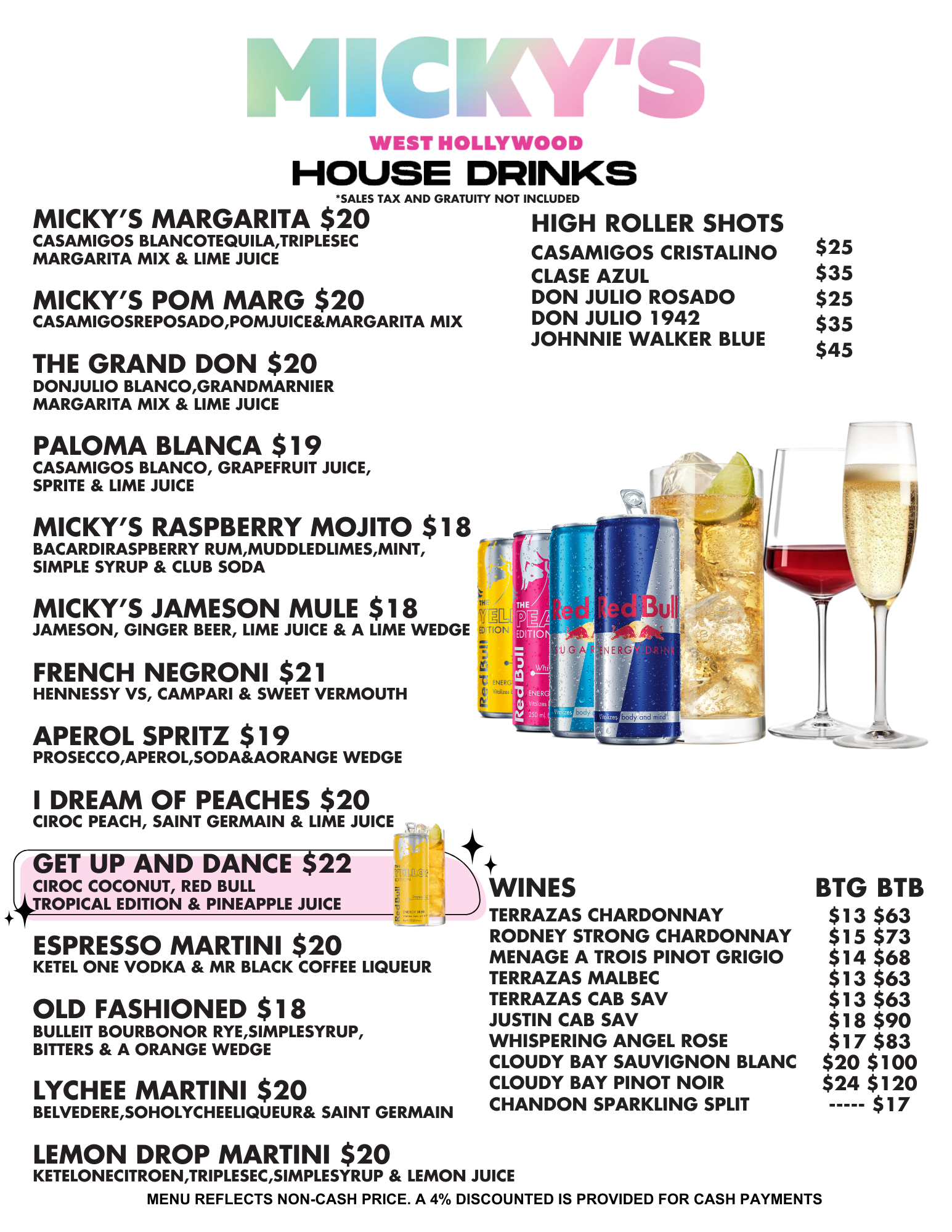 Micky’s Pom Marg – $20 — Casamigos Reposado, Pom Juice & Margarita Mix